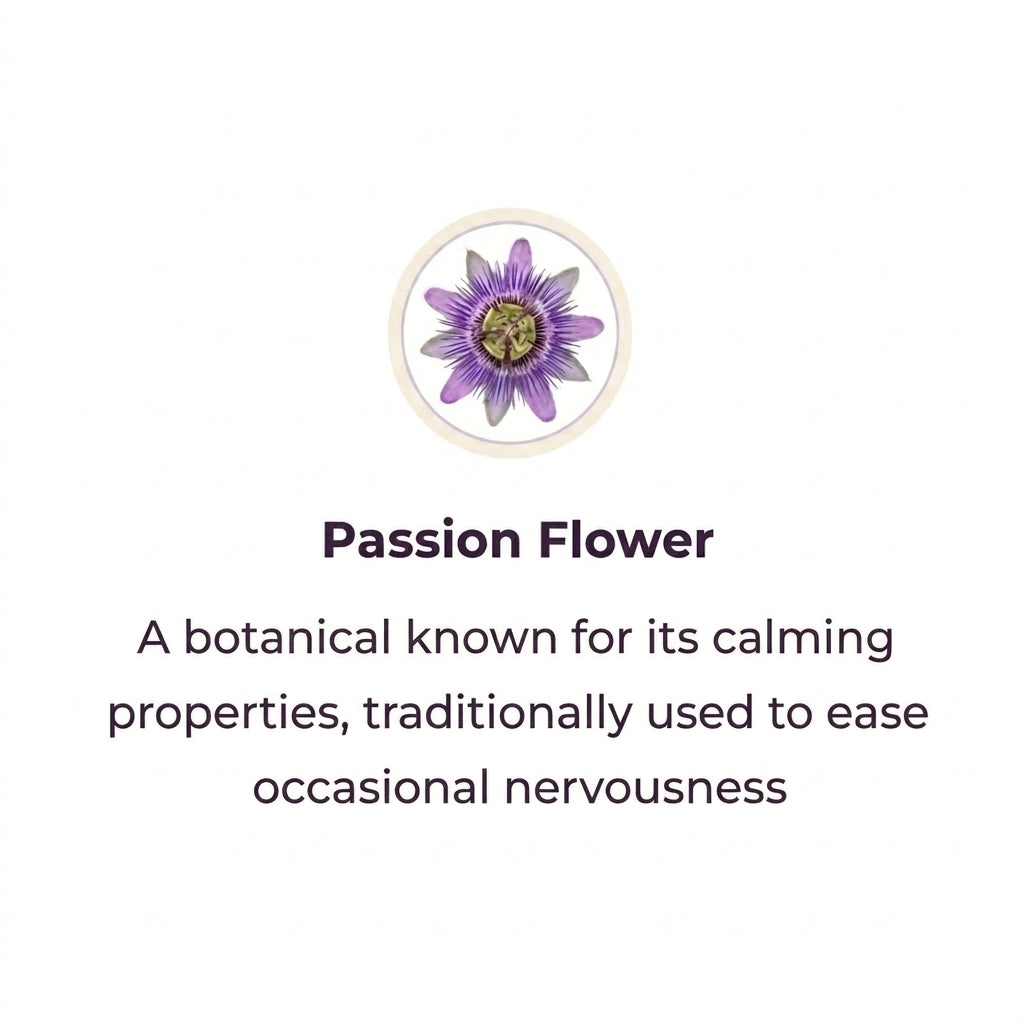 🌸 Passion Flower Used for centuries as a natural relaxant, Passion Flower has been shown in studies to reduce anxiety and promote a sense of calm without causing drowsiness — so your child stays alert and engaged.