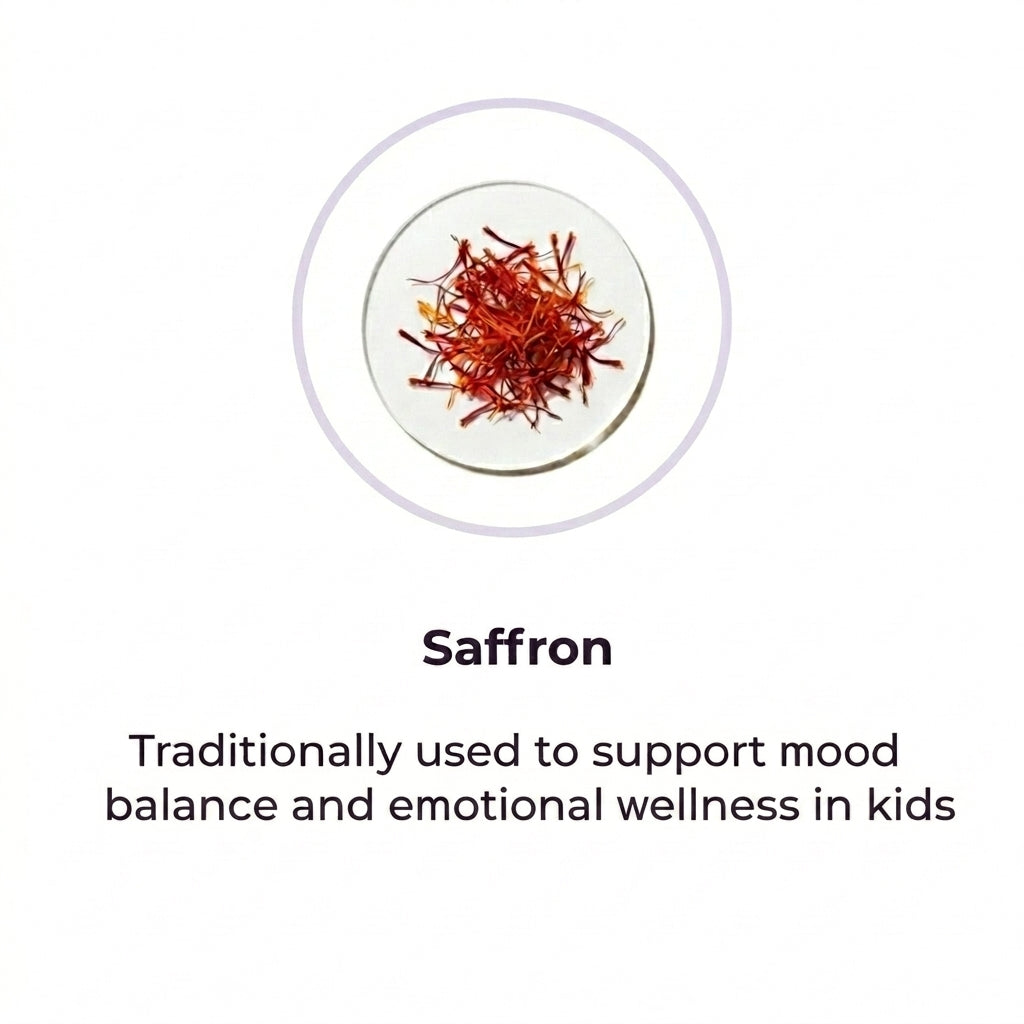 🌿 Saffron Clinically studied for its ability to support mood balance and attention in children. Research shows saffron can help regulate serotonin and dopamine — the same neurotransmitters targeted by many ADHD medications — but naturally and gently.